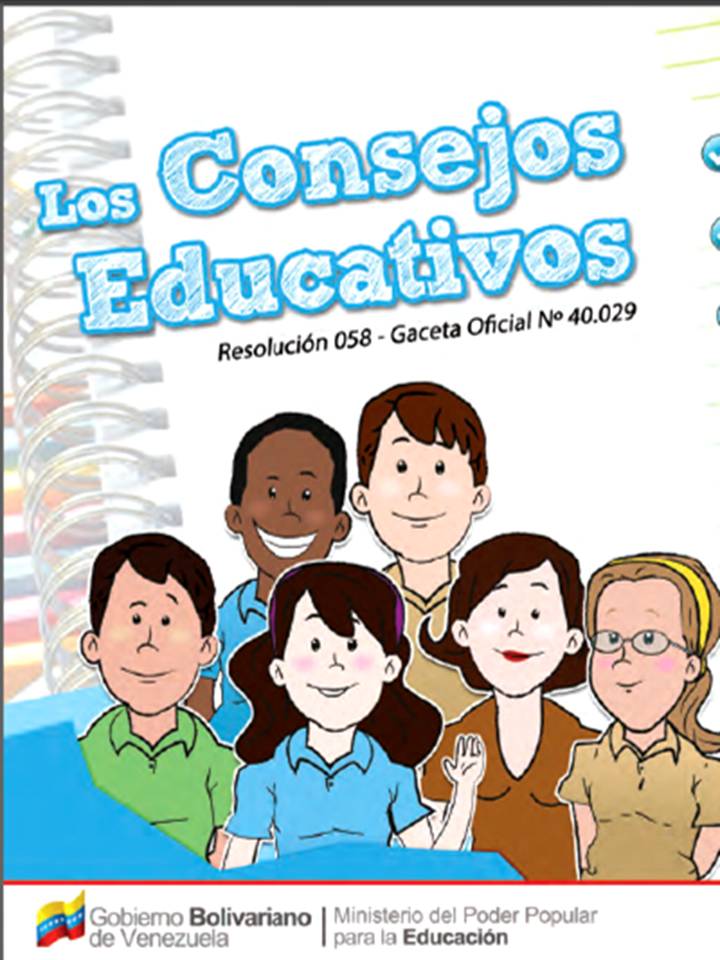 1 Instancia ejecutiva.Es de carácter social, democrática, responsable de la gestión de las políticas públicas educativas en articulación con otras organizaciones sociales en las escuelas.2 Integrantes de los consejos.Están integrados por padres, madres, representantes y responsables de los alumnos, estudiantes, docentes trabajadores administrativos y bedeles de escuelas y liceos. También voceros de educación de diferentes organizaciones comunitarias.3 Objetivos.Garantizar el desarrollo y defensa de la educación para todos, gratuita, liberadora y libertadora, sin discriminación; impulsar la formación integral garantizando la convivencia colectiva, entre otras.4 Vigencia.Están vigentes durante un año a partir de su elección. Su miembros pueden ser revocados. Debe registrarse después de electo en una taquilla única del MPPPE.5 Funciones.Democratizar la gestión escolar con base en el modelo de democracia participativa, sustituyendo a la figura de la comunidad educativa. Debe presentar informes en la asamblea escolar sobre resultados de la gestión escolar.