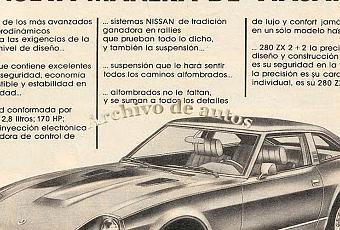 La vieja publicidad de la cupé Datsun 280 ZX la tomé de una publicación especial de la revista El Gráfico, que se llamó Auto ’80, y que en su pie de imprenta tiene como fecha el 4 de diciembre de 1980. Una edición sobre los autos y motos que se podían comprar, y ver, en ese momento del mercado argentino.