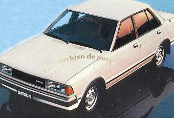 Marca:Datsun Modelo:Bluebird Sedán 1800 GL Año:1980Motor:naftero Ubicación:delantero Marca:Datsun L18SCilindros:4 en línea Cilindrada:1.770 cm3Diámetro:85 mm. Carrera:78 mm.Potencia:110 HP SAE RPM:6.000 Compresión:8,5:1Tracción: trasera Caja de velocidades:4 marchas adelante sincronizadas con marcha atrásSuspensión delantera:independiente con brazos inferiores con resortes helicoidales y amortiguadores hidráulicosSuspensión trasera:eje rígido con 4 puntos de unión y resortes helicoidalesFrenos delanteros:a disco servo freno Frenos traseros:a tamborDirección: tipo piñón y cremalleraNeumáticos: radiales con cinturón de acero 165 SR 14Dimensiones: Largo:4.350 mm. Ancho:1.655 mm. Alto:1.400 mm.Distancia entre ejes:2.525 mm. Trocha delantera:1.380 mm.Trocha trasera:1.345 mm. Despeje sin carga:195 mm. Despeje con carga:115 mm Plazas:5Peso en el orden de marcha:995 kg., con caja automática: 1.005 kg. Velocidad máxima:160 Km/h