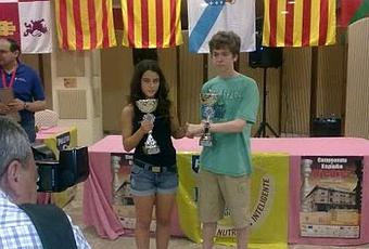 De origen murciano, los nuevos Campeones de España sub16 2010, David Antón Guijarro representando a la Comunidad de Madrid e Irene Nicolás Zapata por la Comunidad Valenciana.Pués concluyó el el penúltimo de los campeonatos de España de Ajedrez (categoria sub16) que se vienen celebrando estas últimas semanas en la localidad jienense de Linares donde nos queda por disfrutar la próxima semana del sub18.