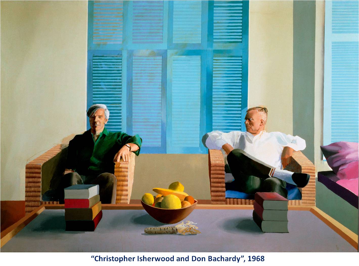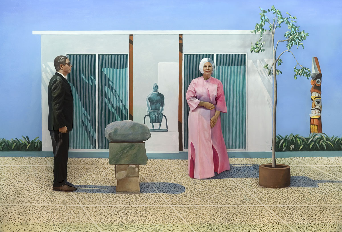 Los retratos dobles se han convertido en verdaderos iconos de la pintura figurativa de Hockney. Entre ellos destacamos los retratos californianos en que los retratados se muestran ante sus viviendas que aparecen como un telón de fondo y tienen un carácter casi escenográfico. A través de estas obras californianas, el artista muestra el bienestar de una parte de la sociedad americana ante sus modernas casas racionalistas.