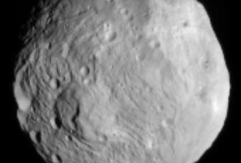 Izquierda: Imagen de Vesta obtenida el 9 de julio por la nave Dawn, a una distancia de cerca de 41.000 kms. de la superficie. Cada píxel representa un área aproximada de 3,8 kms. Crédito: NASA/JPL-Caltech/UCLA/MPS/DLR/IDA.La sonda espacial Dawn ha entrado en órbita alrededor de Vesta, uno de los asteroides más grandes del Sistema Solar, anunció la NASA el domingo.