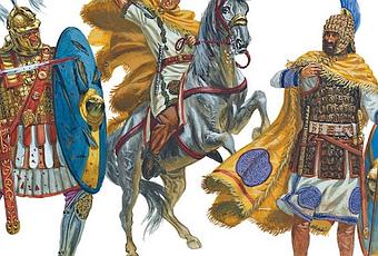 " Centuriones romanos, siglo III d.C. " ( G. Rava ). De izquierda a derecha : Centurión primvs ordo, Legio I Italica, con base en Abrittus (Moesia Inferior) Bulgaria. / Centurión a caballo, con base en Mediolanum ( Milán ) Italia. / Centurion ordinarivs, Legio III Diocletiana, con base en Tebas ( Luxor ) Egipto.