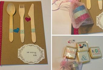 María me preparó unas galletas preciosas con el logotipo del blog y yo le decoré una libreta a modo de libro de recetas, que junto con unas velitas formaron mi regalo. Le debo un par de recetas murcianas para su blog, tengo que mandárselas.