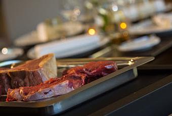 Con una carta especializada en carnes Black Angus de la mejor calidad provenientes de la granja Creekstone en Arkansas (Kansas), tendréis problemas para elegir de entre la carta. Stefan Wystup, el chef del Cru, recomienda el Black Angus Porterhouse de nada más y nada menos que 1600g. que podrás combinar con salsa de setas, romescu, verduras o patatas al estilo americano de entre muchas otras. Otros cortes que encontrarás en carta es el Tenderloin, Rib Eye, New York Strip y el T-Bone.La pieza que elegí fue el Rib Eye de unos 240g. que acompañé con salteado de setas. Para los amantes de la carne, este rincón en Barcelona será una delicia. Ya estoy buscando hueco en agenda para llevar a mis amigos amantes de la carne y del buen comer para repetir.