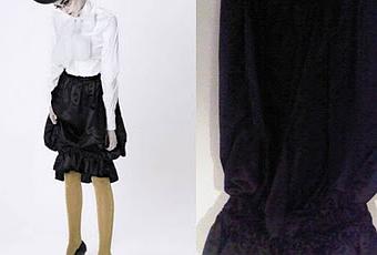 Falda globo de raso negro y frunces en el bajo perteneciente a la Colección "Número9"