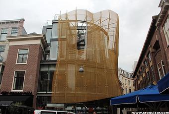 Archipelontwerpers diseñó la renovación de 8 tiendas en el centro histórico de La Haya. Se restauraron las fachadas y se construyeron nuevas viviendas. La fachada vidriada de la esquina se cubrió con una red de acero dorada que otorga un aire exclusivo. Este fragmento contemporáneo de arquitectura líquida alude al lenguaje formal de la arquitectura Art Nouveau de la vecindad inmediata y al curso sinuoso de la corriente que una vez fluyó aquí.