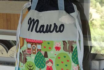 La mamá de Mauro me escribió a [email protected] explicándome que necesitaba una taleguilla para su hijo y que le había gustado mucho el delantal de los tres cerditos y la taleguilla de Miguel. Así que después de agitar la coctelera esta fue lo que salió.