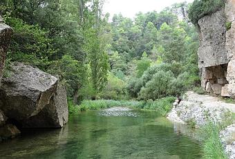 Font del MolíRegresamos al camino y continuamos la ruta. Dejamos atrás los campos de cultivo para adentrarnos en el bosque siguiendo por la orilla izquierda del río. Este sendero es conocido como Camí del Brugent.