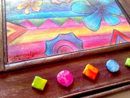 Esta lámina la pinté durante mi estancia en Galicia, la pinté bajo la supervisión de una pequeñaja a la que adoro y echo mucho de menos. Estuve dos meses en casa de mi padre y su mujer, estas Navidades pasadas y pasé la mayor parte de mi tiempo con Clau. Juntas hacíamos manualidades, jugábamos con sus juegos o nos los inventábamos, pintábamos... etc. Me fui de acá con la imagen hermosa de los chamantos y sus colores, se me quedaron grabados y necesitaba hacer algo con eso, así que hoy... vengo a hablarle de Chamantos y Colores; es así como he titulado el proyecto de exploración e investigación de mis propios chamantos mentales. Reflejan un poco lo que sentía en ese momento, me sentía libre, con ganas de expresarme, de gritar en colores y de recuperar mi yo más niña. Me contagié de Clau, de su entusiasmo y sus ganas por hacer cosas, aprender, descubrir, de jugar... puede parecer muy infantil esta lámina para algunos, pero yo lo veo genial, adorable y sobre todo... muy muy alegre. Ése es el sentimiento que refleja: ALEGRÍA. Y me lo he traído incompleto, así que más vale tarde que nunca... ya lo he terminado y lo he enmarcado con un marco rústico... ¿de madera? ;). Espero que les transmita lo mismo que a mi, que les hable de vuestra infancia y que al menos, sirva para recordarla y esbozar una pequeña sonrisa.
