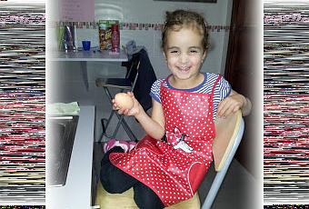 -(sonrisa y pensamiento de "mi madre está loca, pero vamos a hacer lo que pide") Comenzamos a separar las yemas de las claras. Mi hija pensó que era muy divertido ese paso de la yema de un cascarón al otro. Y pasamos a batir las claras a punto de nieve. Primer fallo: no teníamos una batidora de las manuales. Así que empecé con el tenedor, y tras ir al salón a preguntar, por si acaso, yo no la había visto, me dijo que usara la batidora con las palas. -sin comentarios- Después con la cuchara de madera, fuí vertiendo los ingredientes en el orden y en la cantidad indicada por Carmen.
