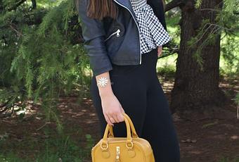 Hoy el color escogido es el negro, ya se que estamos locos por los colores ya que es primavera pero que queréis que os diga a mi el negro me sigue encantando en todas las estaciones, es un color que siempre sienta bien, y si lo pones en este top de cuadros blanco y negro mejor aun. Tenia ganas de algo de cuadros y este fue el elegido, porque es muy cuqui con el volante, la espalda se queda muy bonita en pico y el escote hace que le de el toque sexy a si que lo tenia todo. Lo combine con estos pantalones, de tiro alto en color negro,y para rematar la el zapato de estalonado y sin puntera con unos adornos en la parte superior que quedan super bonitos. Como complementos he escogido unos aros de plata con baño de oro rosa, que me encanta y podréis encontrar en nuestra tienda