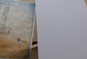 Tuve un fallo que os cuento para que no os pase a vosotr@s...¿Veis el lateral derecho de la lámina en la foto de abajo? Digo la raya vertical que hay debajo de las 2 gaviotas que estan juntas......me emocioné sombreando de varios tonos azules todo el relieve y sin darme cuenta me "pasé" dentro del papel de arroz. Cómo aún no lo había barnizado el papel absorbió enseguida la pintura y ya veis que ha quedado de un azul más intenso. No queda mal, pero me hubiera gustado más que quedase más azul pálido como el resto....