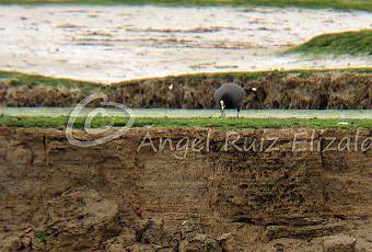 El pasado 30 de Abril me acerqué a la Ría de Ajo, a la que últimamente tenía un poquito abandonada. En el intermareal de la misma se alimentaba de Zoostera este solitario ejemplar de Focha común (Fulica atra); es la primera vez que observo esta especie en el estuario en todos estos años...