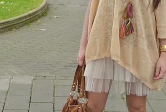 Pues precisamente inspirándome en estos festivales y en los looks que podemos ver en ellos hoy os traigo un look festivalero y muy para el fin de semana, con ese aire de estilo boho que tanto me gusta. Está compuesto por prendas muy cómodas, por un lado un vestido tutú al que se le pueden dar muchas utilidades, de hecho alguna vez me lo habéis visto en looks más de invierno con jerseys y medias y por otro un maxi poncho, este tipo de prendas me parecen una alternativa ideal al cardigan de punto y es muchísimo más estilosa, si os animáis con uno procurar que tenga algo de estampado étnico como éste, son lo más esta temporada. Debajo llevaba una camiseta de estampado animal print que contrastaba con el resto del look y que podéis ver en el enlace que os dejo más abajo. De calzado que mejor que las botas Hector Riccione, ahora que espero que llegue el buen tiempo y deje de llover las comenzaré a poner un poco más a menudo y, como no, mi inseparable bolso de flecos, más de tendencia que nunca esta temporada que tanto se llevan los flecos.