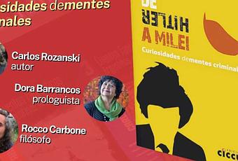 Te invitamos a la 4° charla debate y presentación del libro: "De Hitler a Milei. Curiosidades de-mentes criminales", de Carlos Alberto Rozanski. Acompañarán al autor Dora Barrancos, prologuista del libro, y el filósofo Rocco Carbone.