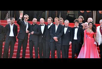 En la foto, el reparto en el Festival de Cannes. A la izquierda y de primero el gran actor Michael Lonsdale con una robusta carrera internacional. De tercero, saludando y de gafas, Lambert Wilson quien conmueve como Christian el director del monasterio. Este actor ha tenido una desigual carrera. Fue muy joven la pareja de Brooke Shields en ese estrepitoso fracaso llamado "Sahara"