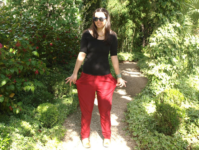 Hola a todos! Ya estamos más cerca del fin de semana y, aunque parece ser que no tendremos buen tiempo, si pudimos disfrutar ayer de un fantástico día soleado en Madrid, donde se celebraban varias presentaciones. Para asistir a ellas, elegí un look un tanto "especial" ya que los pantalones son de pijama, con amplios bolsillos y de forma abombada, pero cuando me los compré, opté por darles un nuevo uso. Acompañados de básicos como una camiseta negra, una cazadora vaquera y slippers doradas. ¿Qué os parece el look?