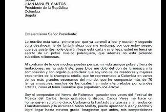 Quiero citar el titular de El Tiempo «La carta a Santos de una leyenda de Palenque El compositor Justo Valdés lamenta la falta de apoyo a la música de su tierra.» . [link]