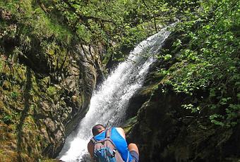 Comenzamos a descender por la margen derecha del río Mildón, disfrutando de un tramo de gran belleza con numerosas pozas y pequeños saltos de agua que discurren muy cercanos al sendero.