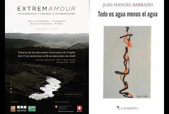 Se acentúa la sensación de tranquilidad por el silencio o el sonido de fondo de un arpa por la radio al saber que ahí afuera hay un bullicio incomprensible. Abriéndose paso entre la muchedumbre que mira y consume en el Mercado «Medieval» como si fuese a acabarse el mundo, un empleado de BCL (Brócoli Facility Services) llegó este mediodía hasta el portal de mi casa y llamó para subir a tomar la lectura de mi contador del gas. Pensé en que era la visita que esperaba. La escena debió de ser llamativa; también por el mono verde de la empresa con el que iba ataviado el lector y que llevaba bien marcadas las siglas en blanco en las que me fijé mientras avanzaba diligente por mi pasillo. Todo bien, dentro de lo que cabe. Ha sido una semana nutritiva, casi hipercalórica, iba a escribir. No. A pesar del poco ejercicio por cambiar de rutina, la dieta ha sido sana por salir de casa, dejar el ensimismamiento y estar con otros por motivos mejores: una conversación agradable en un bar con el mucho aprecio certificado por los años recientes, la oportunidad para el encuentro que da el acto cultural y social que es una exposición o la presentación de un libro entre un reducido grupo de personas con las que uno puede renovar lo vivo y lo ya vivido. Hoy, mientras recogía mi compra en la caja del supermercado, la cajera me pidió el periódico que llevaba conmigo porque le había llamado la atención la foto de Rosalía agradeciendo sus varios premios Grammy Latinos. La exposición fue el jueves en Trujillo, en el espectacular Palacio Barrantes-Cervantes, con fotografías de Patrice Schreyer y textos de Álvaro Valverde, comisariada por Jorge Cañete. Con ellos y con más gente querida —Christophe, María José y Gonzalo, Yolanda, Montse y Salvador, Maribel y Basilio— disfruté de un acto que tiene sus antecedentes en lo que escribí este pasado septiembre. Disfruté también de unas fantásticas fotografías sobre la realidad «sencilla, básica, cercana. Humildes hierbajos, piedras milenarias, campos abandonados, dehesas interminables, árboles retorcidos, celdas conventuales, aguas remansadas… Y todo en medio de una soledad que estremece», escribe Álvaro en su texto del catálogo. Blancos y negros y una tonalidad de color contenido por la luz matizada de un alba o un atardecer. El ojo de Patrice se ha fijado en una mitad de Extremadura, la cacereña, principalmente —están, sí, Mérida y Castuera—; pero estoy seguro de que en su cámara cabrían con igual fascinación los paisajes de la otra provincia que nos convierte en un espacio único. La presentación fue ayer viernes. De Todo es agua menos el agua (La Moderna, 2022), de Juan Manuel Barrado, de quien en este blog pueden encontrarse algunas referencias. Presentó el acto David Matías, que es el editor de La Moderna, y habló sobre la obra la profesora M. Vega de la Peña Barco. No quise decir en público a Juanma que el libro, del que él dijo que era un fruto del período de la pandemia, me lo trajo a casa en mayo de 2019, que lo leí, y que le envié mis notas en agosto de ese año. Consta, sin embargo, en el cabo de la edición que se presentó ayer, lo siguiente: «Sevilla-Huertas de Ánimas, junio 2020-noviembre 2021». Luego, tras la presentación, bromeé en un bar de copas con estas mentirijillas literarias con Fefa Alvarado, Javier Alcaíns y con el autor —los tres al quite, nunca mejor dicho— antes de cenar aún con el sabor de las palabras de Juanma sobre tanta gente leída y admirada como Antonio Gómez, Fernando Millán, María Zambrano, Felipe Núñez, Juan José Narbón, Luis Cernuda, Ana H. del Amo, Juan Carlos Mestre, Julián Rodríguez, entre otros muchos que están en su libro. Lástima que no comparta más gente estas cosas, que resultarían de otro modo.