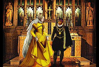 La imagen muestra el matrimonio de Don Alonso Titu-Atauchi Inca, hijo del emperador inca Huascar, con Doña Constanza de Castilla, descendiente del Rey Pedro I el Cruel. La boda se celebró en Cuzco a mediados del siglo XVI.