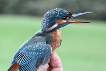 Fotos jornada de anillamiento científico abierto al público organizado por Ecometropoli, (Santa Coloma de Gramanet ) en el río Besós del día 7/10/2018: Alcedo atthis ♀ . Martín Pescador Común. Blauet. Common Kingfisher..Anillamiento dirigido por : Xavier Larruy