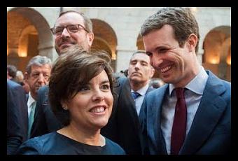 Por un lado, la del discurso buenista y vacío, la que se supone que aplicó un 155, la que va a terminar por liquidar lo que queda del PP, curiosamente dice #ParaQueGaneElPP, frente a un Pablo Casado (#IlusiónPorElFuturo) que lo que hace es rebobinar la cinta que un valiente Santiago Abascal (VOX) ha estado difundiendo antes en solitario (y ya no tanto) por toda España.