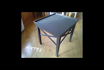 Me regalaron esta mesa auxiliar para que hiciera con ella lo que se me ocurriera, y no se me ocurrió otra cosa nada más verla que, hacer un banco. Sin pensarlo la corté por la mitad.