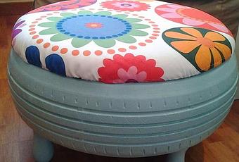 Hace tiempo que vi en internet cómo se podía transformar un neumático en un puf. Como necesitaba un puf y no quería gastarme mucho dinero, pensé que podría ser una transformación-reciclaje interesante. Así que le dije a mi chico que pidiera un neumático en un taller. Tenía unas patas en casa que formaron parte de un viejo sillón. También tenía una tabla de DM de 1 cm, algo de espuma de relleno, un poco de guata para acolchar y una tela de Ikea muy alegre, así que sólo tuve que comprar pintura y algunas tuercas y arandelas. Y este es el resultado. Hay muchas otras ideas en la red para reutilizar viejos neumáticos. Aquí les dejo dos que me encantan. Un puf recubierto con cuerda: Una maceta grande y muy colorida: