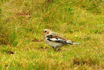 Escribano nival Plectrophenax nivalis "Snow bunting"Una vez pasado el chaparrón y saciado el apetito, al menos de momento, la escribana se dedicó un rato a atusarse y secarse el plumaje.