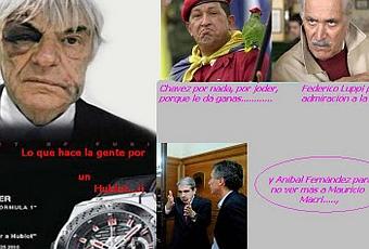 Ecclestone por el reloj, Chávez, por nada, por joder, porque le da ganas, Federico Luppi por su admiración a la Chiqui Legrand, y Aníbal Fernández por no ver más a Macri (y menos en la Rosada)