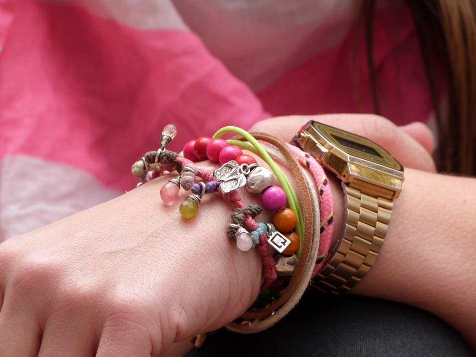 Mirad que mona la pulserita que llevo, la que tiene las flip-flop de bolitas, es de una marca nueva Mui-Mio que me gusta mucho.