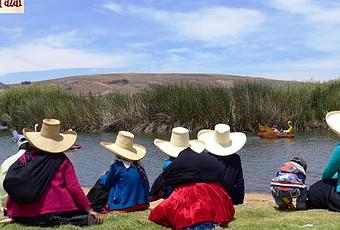 Como escribí líneas arriba la elección no pudo haber sido mejor. Fue una gran idea haber venido a visitar este lugar, más aún si se considera que aquella mañana estaba llena de gente del lugar quienes disfrutaban del sol y la tranquilidad. Niños de varios colegios habían sido traídos y jugaban felices sobre la playa o paseaban en lanchitas sobre las mansas aguas de la laguna. Las madres miraban a sus pequeños desde lejos, mientras daban vueltas a sus ruecas y sus llamativos sombreros de ala ancha (un clásico en la zona) les ensombrecían los rostros. El sol realmente es intenso por lo que viajeros, cuando vayan, ya saben, gorrita y mucho protector solar.En un momento fuimos al muellecito y caminamos por allí mientras mirábamos la laguna, y al fondo los cerros que la rodeaban. Pese a la intensidad de los niños, a sus gritos y risas, se sentía mucha tranquilidad, mucha paz. Imagino que esta paz se debe ver alterada en fiestas patrias peruanas, fechas en que se realiza una especie de competencia de deportes de aventura acuáticas tales como moto náutica, esquí acuático, kayak y sky surf.