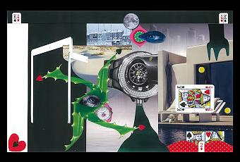 ("Portal con Rey de Picas." Collage 30 X 42 Cms. Autor: Víctor José Guindo.)