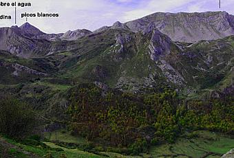 la pareidína y bajo ella la braña de murias llongasuna vez en murias llongas, atravesaremos la braña en dirección E. dejando las verticales paredes de el alto la pareidina y acercandonos bordeandola y dejandola siempre a nuestra dcha. hasta las praderas de cebolléu desde donde iniciaremos la ascensión a los picos blancos, buscando el collado que separa estos de la peña sobre el agua