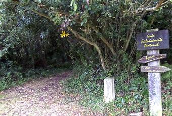La mañana siguiente amaneció oscura y levemente lluviosa, orbayando como dicen en Asturias, pero este tiempo es estupendo para caminar. Después de desayunar y con las claridades de la mañana, no muchas pues aunque no había niebla estaba bastante nublado, comencé a caminar. Tras el Hotel Canero comienza un camino forestal que sube en fuerte pendiente hacia la carretera pero que te evita un largo rodeo, tan solo apto para caminantes. Y nos vamos arriba.
