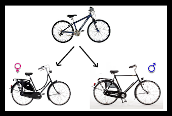 Tras una elipsis narrativa ahí estábamos los dos, en la oficina del rabobank, prestos a recoger nuestras prometidas rabobikes. En ese momento descubrí que existen bicicletas de hombre y de mujer ya que tenían dos modelos para elegir. No es que unas se pinten de azul y otras de rosa, pues todas las bicis del rabobank eran de un flamante color naranja. La diferencia, por desgracia, tampoco se halla en el tamaño. Sin saberlo había dejado atrás nuestras robustas y unisex mountain bikes y entraba en un mundo extraño en el que la posición de una barra horizontal determinaba el sexo del ocupante del vehículo.