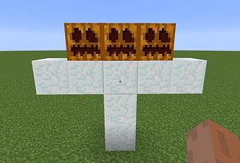 Haz una T con los Bloques de Hierro y la calabaza en la región central superior de la T. Cerciórate de fabricarlo en un espacio abierto y con espacio. La protección del hogar y/o aldeas en Minecraft no es cosa de risa.