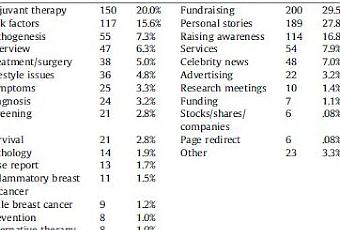 Una aproximación interesante a la información que se intercambia en internet. Sorprende la parte promocional y de financiación, por encima de la información asistencial o de apoyo. A ver si pronto tenemos estudios similares con datos españoles.