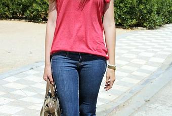 Vamos con el look de hoy donde todas las prendas que os enseño son bastante básicas, aunque le doy protagonismo a la camiseta roja que destaca sobre el resto del look. Decidí combinarla con unos jeans y el resto de complementos beige. Pienso que el rojo y beige son dos colores que juntos quedan genial y a mi es una combinación que me encanta. Espero que os guste!!