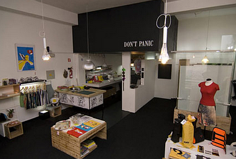 Gonzalo y Camila son los creadores de Don´t Panic una tienda/galería/taller que ofrece arte y producto en un mismo sitio. Los artistas exponen su obra en la parte de la galería y en el taller se hace el producto (camisetas, bolsos, muñecos, etc.) que lleva la imagen de la exposición o de la obra y que posteriormente se comercializa en la tienda. Éstas son las tres áreas de un mismo espacio que tiene como premisa, según sus propietarios, que “los productos que se vendan tienen que estar realizados con amor. Esto, entre otras muchas cosas, implica no estar hechos en grandes cantidades; tiene que haber una relación directa entre el diseñador y el producto final”.