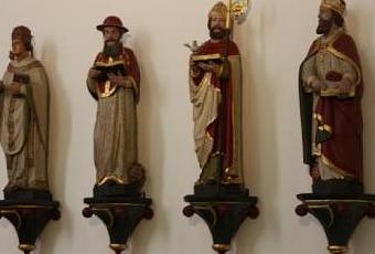 Prueba irrefutable de cuanto están presentes los animales en la iconografía cristiana. Aquí en esta imagen, los cuatro Padres latinos de la Iglesia, aparecen cada uno con animales. Sin proponérselo, forman un conjunto donde el atributo más característicos es precisamente el animal: