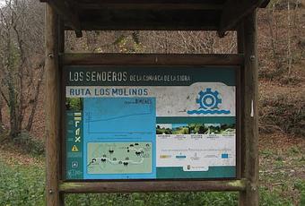 Ruta de medio día que recorre la PR AS-141, más conocida como los Molinos de Bimenes, y gran parte de la PR AS-142 o la Senda Peña El Hombre, para lograr cerrar una agradable circular bajo la Sierra de Peña Mayor.Durante la subida, veremos varios molinos bonitos, en general muy bien conservados, salvo un par de ellos que están en ruinas. La ruta en sí de los molinos discurre por un sendero que sube río Rozáes arriba, muy bien señalizado y sin posibilidad de pérdida. En ciertas épocas de lluvias, el sendero puede estar muy embarrado, pero en nuestro caso, todo seco. En general los molinos están a la vista, salvo alguno que hay que desviarse unos metros del sendero para lograr verlo. Al final de la ruta, llegaremos a un puente bajo el que está el bien cuidado Molín de Milio, y unos metros antes, desviándose por un sendero a la izquierda podemos visitar el Molín de Honorio y una bonita caída de agua a su lado. Aquí, si no nos interesa proseguir con la PR AS-142, la ruta de los molinos finaliza y deberíamos bajar por el mismo sendero. En nuestro caso, continuamos esta nueva ruta, aunque hay que comentar que ya no está tan señalizada como la ruta de los molinos, e incluso hay un pequeño tramo con un sendero algo feo por el barro y la vegetación. La constante subida con la que nos enfrentaremos, nos llevará a dos cruces, por los que nos vamos a la izquierda en ambos. Llegaremos a la proximidad de una pequeña construcción, donde finaliza este amplio sendero, y arranca otro mucho más pequeño y con algo de barro y vegetación. Es un corto trayecto hasta salir a una pista que ya nos lleva valle abajo. En breve, llegamos a una solitaria casa, de donde arranca la pista hormigonada que baja directa a Santa Gadía. A partir de aquí, carretera sin prácticamente tráfico para volver al punto de inicio.