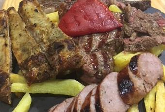 Se trata de una sidrería amplia con comedor, que dispone también de un local anexo, pero independiente, con zona para niños, y preparado para realizar espichas, llamado el Llagarín la Cabaña. Nosotros comimos en esta zona aprovechando la zona para los críos, consistente en la típica "jaula" (porque seamos realistas, suelen ser jaulas) con bolas donde los críos pueden jugar a sus anchas.. Para comer pensábamos en tomar el menú del día, compuesto de tres platos, dos primeros, tres segundos y tres terceros a elegir, por 14 euros los sábados o 17 euros los domingos, pero al final optamos por otro menú del que disponen los fines de semana, el menú parrillero. Es un menú con un primero a elegir, entre sopa de marisco o ensalada mixta, y de segundo un plato de parrilla, compuesto por costillas, criollo, churrasco, picaña y entrecot. El precio de este menú es de 18 euros. La sopa estaba bastante rica, y la ensalada es bastante abundante. En cuanto a la carne, no es nada del otro mundo. Las costillas correctas, y el resto normal, salvo el churrasco a mi personalmente no me gusta nada como se sirve, ya que se trata de una carne bastante dura y suelen servirla muy pasada. Todo ello viene acompañado con patatas.