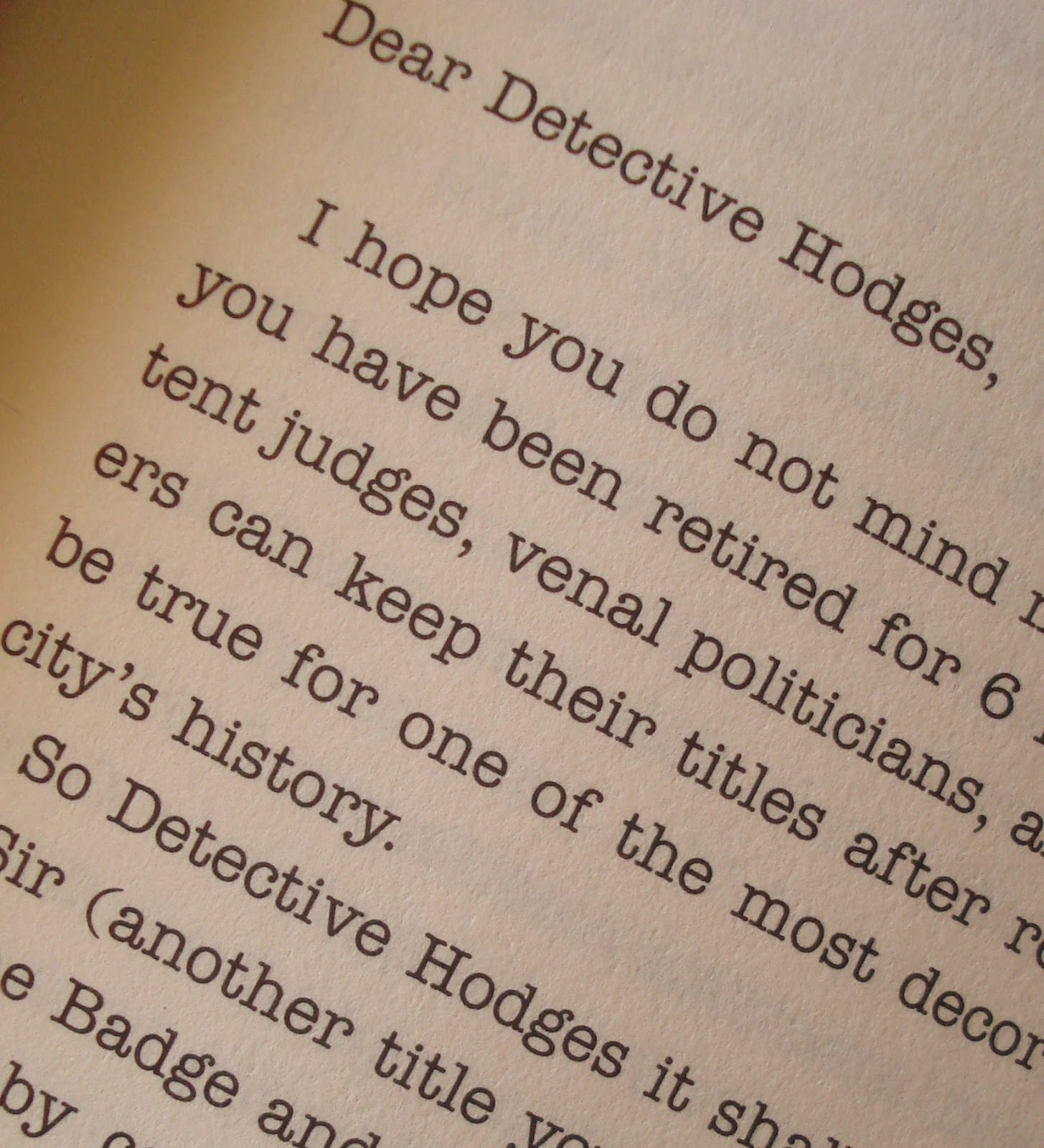 En la novela Mr. Mercedes (2014) de Stephen King, un detective jubilado llamado Hodges recibe, por correo postal una carta, escrita a ordenador, de un asesino en serie.La carta, por supuesto, no tiene huellas dactilares ni ofrece ninguna otra pista que pudiera llevar a la identificación del remitente. O eso cree el susodicho.