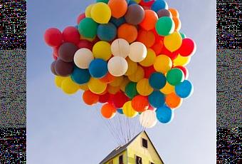 Gracias a National Geographic una de las escenas más conocidas de la película 'Up' ha tenido su réplica a tamaño real. La casa de Carl, el simpático abuelo de la película, ha volado gracias a 300 globos de colores rellenos de helio durante una hora, llegándose a levantar 3.048 metros.