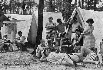 Ya está instalado el campamento, donde se nos ve alegres y relajados, en un punto indeterminado del oasis de El Pardo. Estratégica ubicación por si apetece ir a la urbe añorando las tapas.