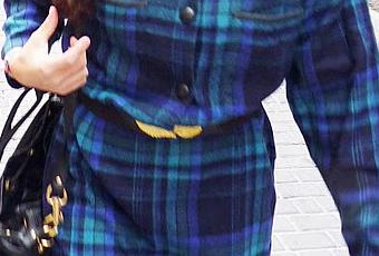 Y este otro, tiene unas hombreras enormes y también un cuerpo anchísimo, y luego una falda de tablitas que no deja enseñar más que el tobillo. Comentaros que el cuellito blanco se lo añadió mi madre (se lo quitó a un jersey de lana) porque le parecía demasiado descocado... muestra de que en el norte, el invierno es muy frío... Si hubiera sabido que después de 20 años iban a ser lo más...