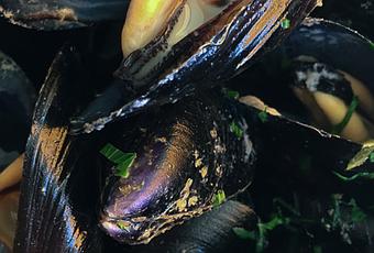 En nuestra comida, aprovechamos para probar alguna cosa nueva, pero también repetimos algunas tapas que nos gustaron y que, por alguna razón, me parecen las ideales para compartir en verano. Es el caso de sus mejillones con agua de sidra. Quizá por ser poco habituales, la olla de moluscos elaborados de esta forma me parece una de las más originales que he probado. Otro de sus entrantes más difíciles son las anémonas rebozadas con ensalada de algas. Difíciles por ser un producto de los que gusta mucho o ni se prueba, entrando en la siempre problemática de las texturas. Al ser rebozadas, se salva parte de este rechazo, ya que quedan más crujientes y pierden viscosidad. Aún así, habrá quien se niegue. Una lástima, pero es algo que no se puede evitar.